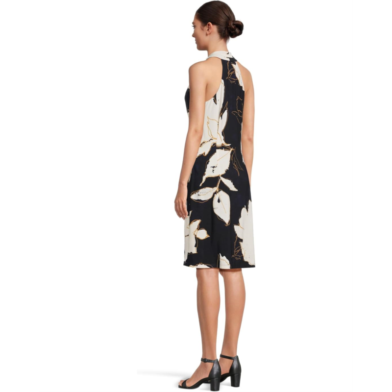 - Trendy halter neckline with buttoned back closure.