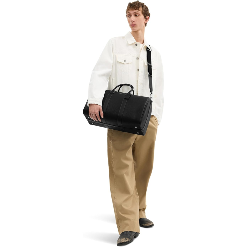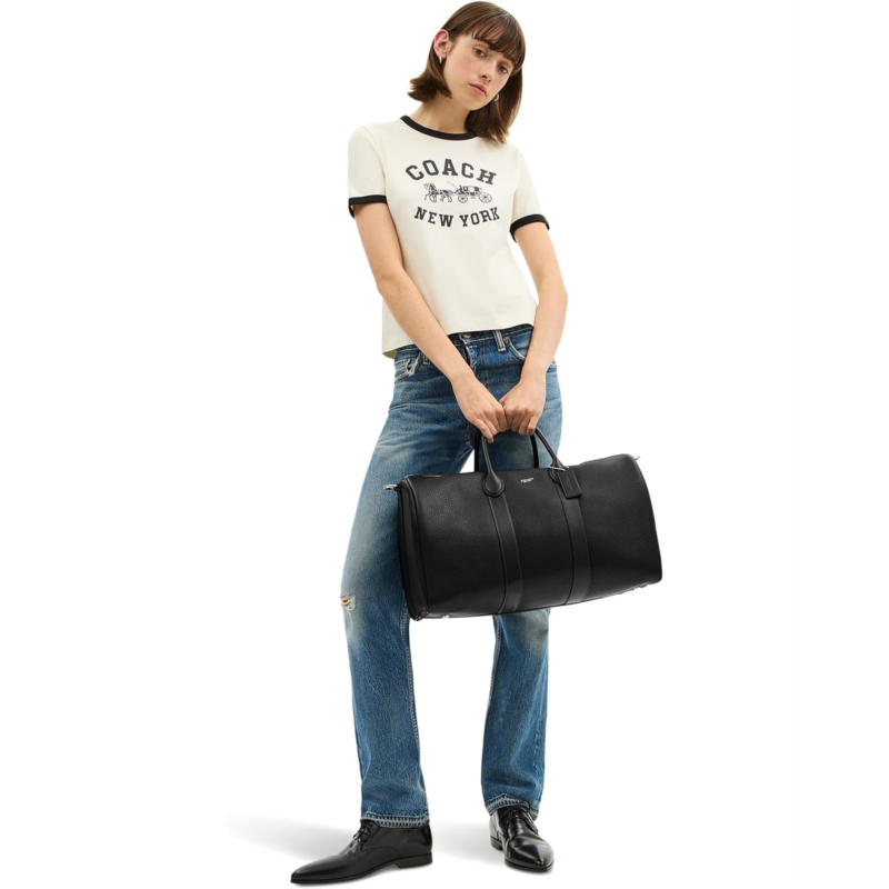 - Elevate your style carrying the COACH Compass Bag 45, crafted from soft pebble leather and refined calf leather for a luxurious feel. This spacious bag features a convenient zippered top closure, perfect for keeping your essentials secure on the go. With a detachable and adjustable crossbody strap and dual top grab handles, you can easily switch up your look to suit any occasion.
