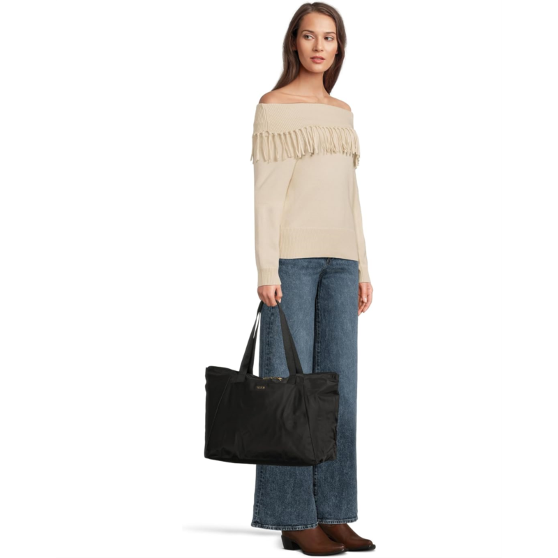 - Now in a medium size, the Tumi Just In Case Medium Tote folds flat to be completely packable. Keep it in its small zip pouch that can easily be stored inside larger bags for those moments when you need it ''just in case.'' It features a double-zip entry to the main compartment for secure access, along with an open pocket for quick-grab essentials. Comfortable shoulder straps make it easy to carry, while the Add-a-Bag strap allows for effortless attachment to rolling luggage.