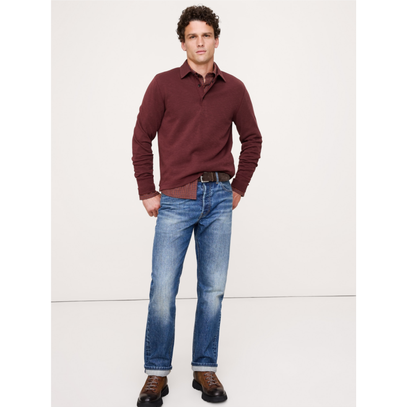 - A customer favorite, now in a long-sleeve polo. Our Double-Knit fabric is made from a blend of organic cotton that we love for its incredible softness and its ability to serve as either a first or second layer.