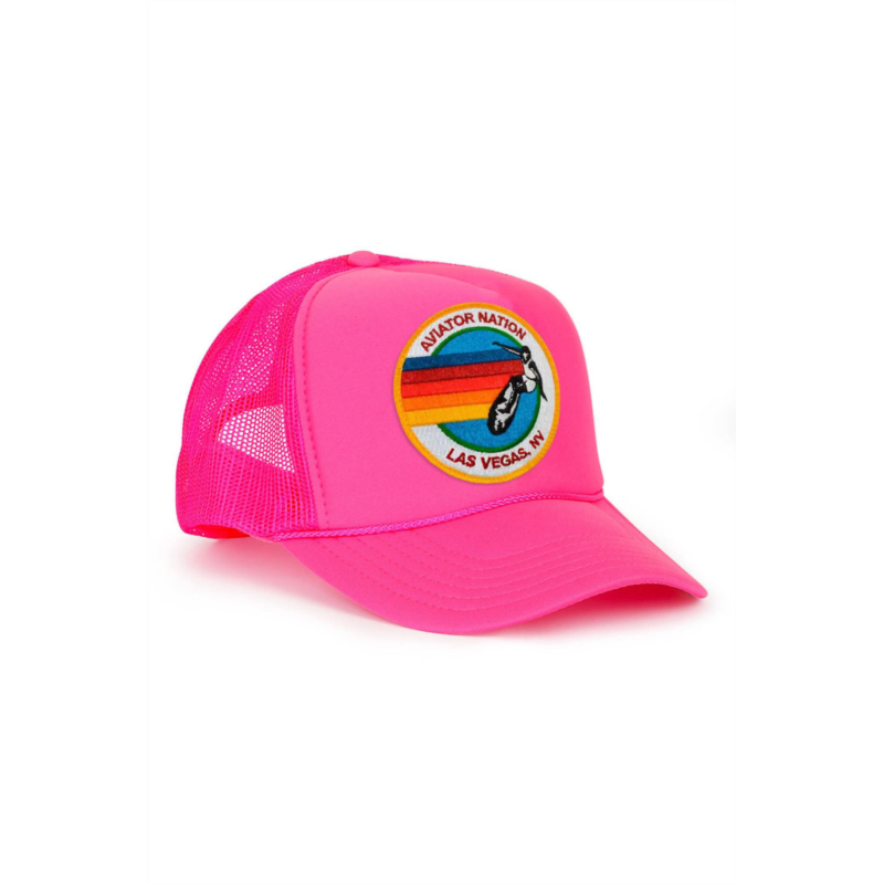 [US] AVIATOR NATION unisex signature vintage low rise trucker hat in neon pink