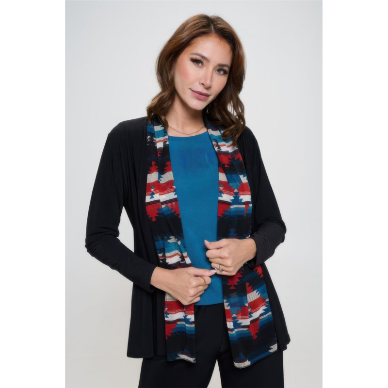 Sophisticated yet easy to wear, the Plus Size Mesh Romance Trim Jacket features a flowy silhouette enhanced by a romantic mesh edge. The printed panel adds a stylish twist, while the ITY knit delivers stretch and structure. With sizes up to 3XL and easy-care fabric, this jacket offers fashion-forward confidence with everyday comfort.