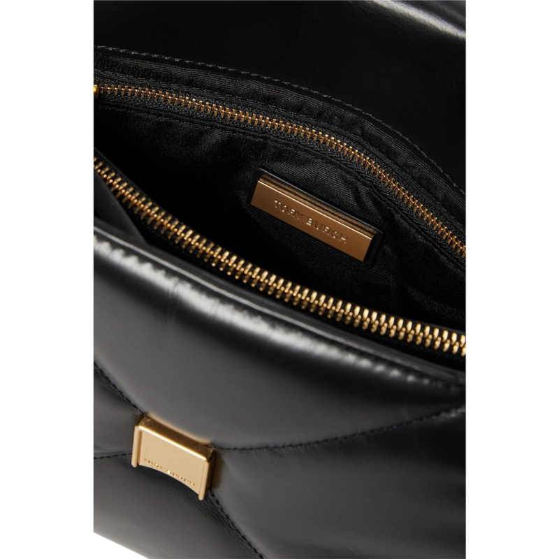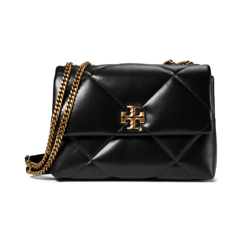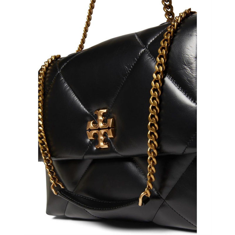 - Indulge in the epitome of elegance with the Tory Burch Convertible Shoulder Bag. Crafted to captivate, its cotton lining and flap with magnetic snap closure exude sophistication. The adjustable shoulder strap, adorned with brushed gold chain, ensures comfort and versatility, allowing seamless transition from shoulder to crossbody. With two pockets, it combines style with functionality effortlessly.