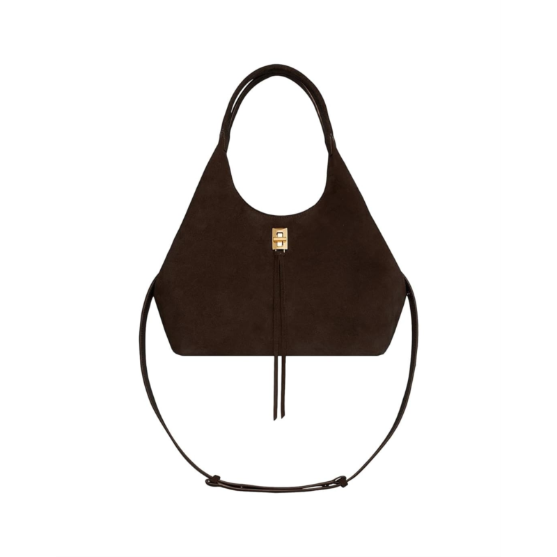 - Timeless, minimal design with maximum versatility, the Rebecca Minkoff Darren Carrysome purse carries you through it all. Crafted from soft suede leather, it features antique brass hardware, an interior slip pocket, and a turn-lock closure to keep your essentials secure. The detachable and adjustable shoulder straps and top grab handles ensure versatile styling.