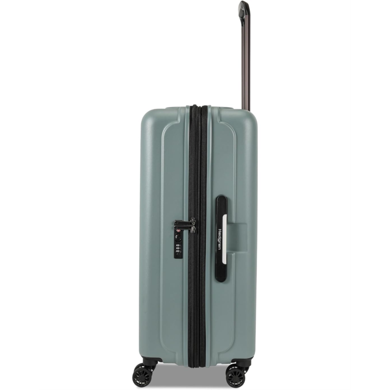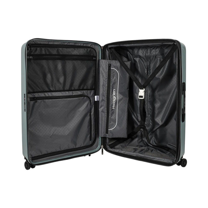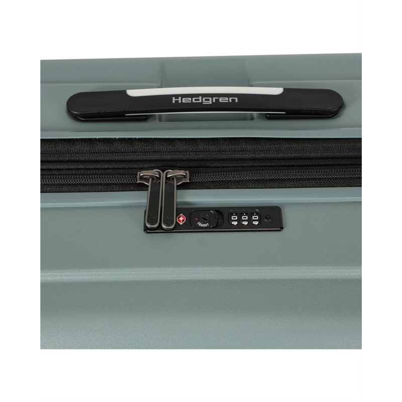 - Explore the world carrying your all essentials inside Hedgren Grip Large Expandable Spinner. The main compartment is expandable. The luggage is made of polycarbonate recycled fabric and biggest case in the range is perfect for long-haul trips. A silent spinner wheels make running through airports or train stations a breeze. A security TSA lock and double-coil zipper closure keeps the things safe. The sandblast shell texture gives a sophisticated edge, and bold colour accents add a pop of fun. Gunmetal hardware completes the look beautifully.