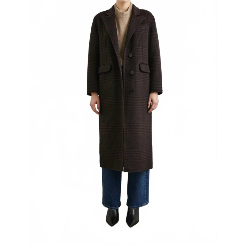 Classicly chic, this is the kind of trench coat that never goes out of style.Stay chic and warm with the Women''s Espresso Houndstooth Coat by Rails, an exquisite brown trench coat perfect for those crisp fall days. Featuring long sleeves and a stylish collar, this coat offers a tailored fit with its button closure and durable, brushed wool blend composition of 51% wool and 49% polyester. Crafted to perfection, it is lined for extra comfort and imported with meticulous attention to detail. Effortlessly blend style and practicality with the textured pattern and handy front pockets, making it a preppy staple for vacations and everyday wear.