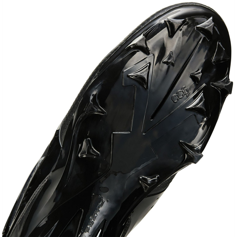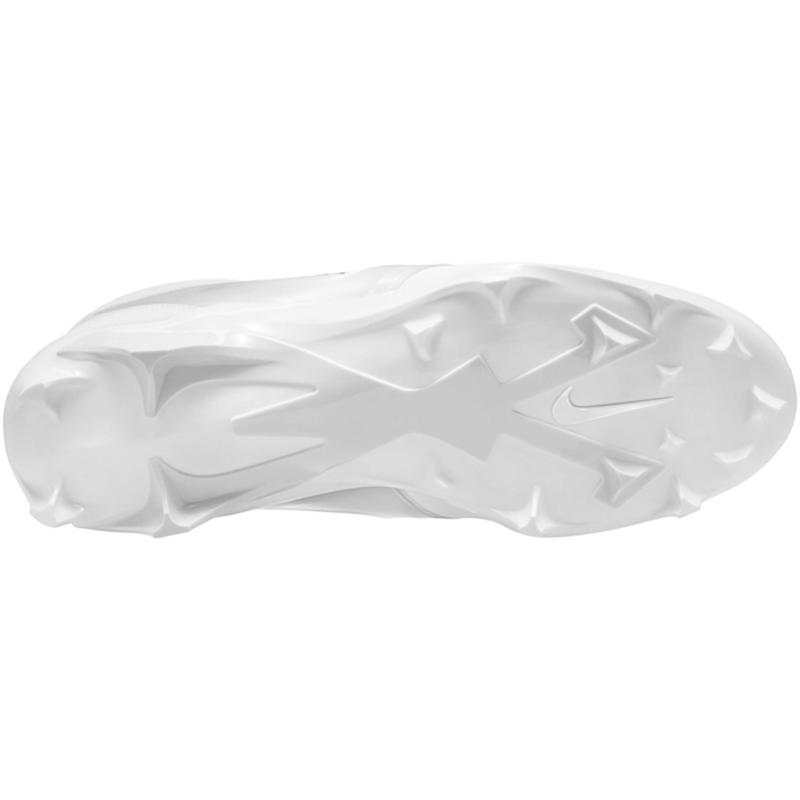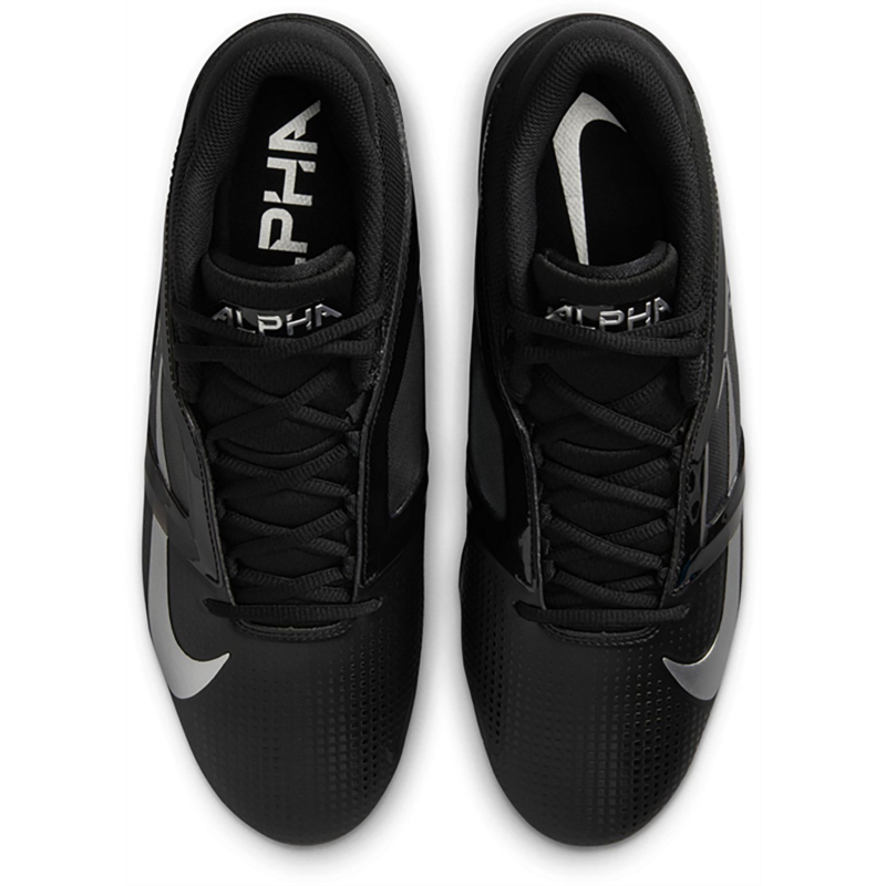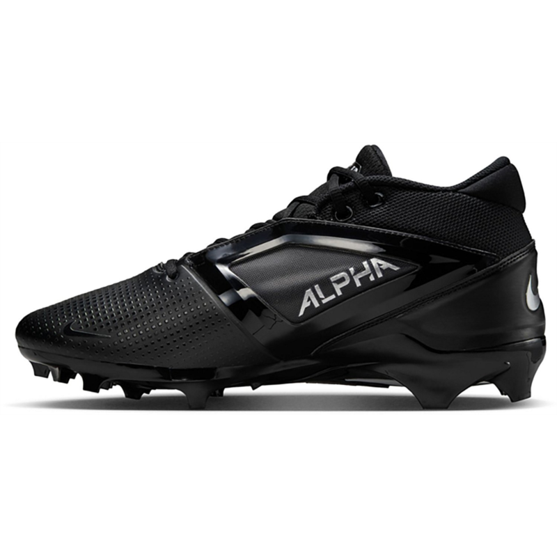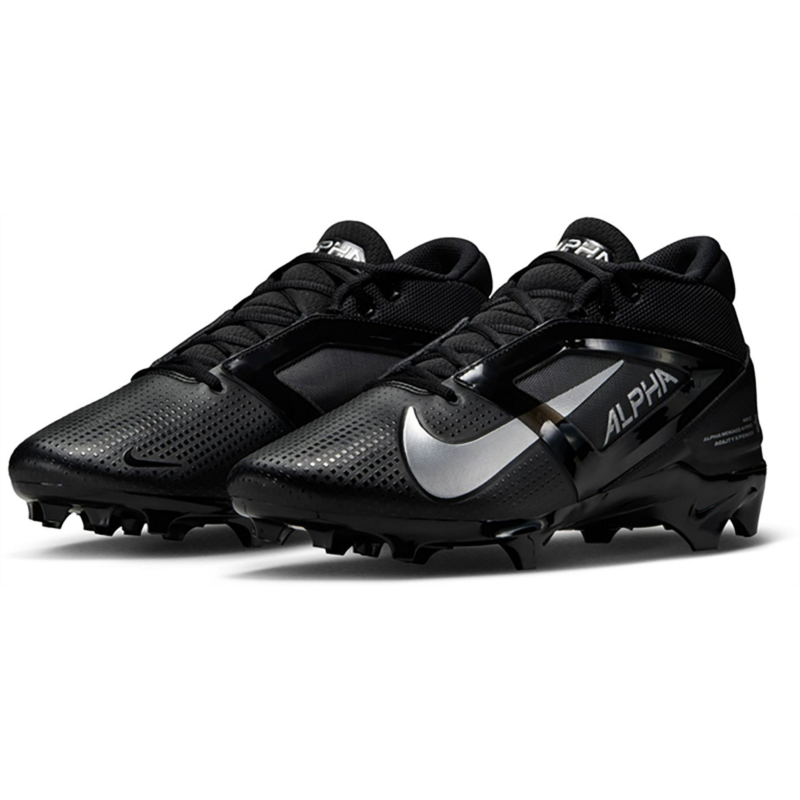 Put the moves on the competition with the Nike Mens Alpha Menace 4 Pro Football Cleats. The molded plastic quarter cages in the uppers provide stability, while the wide stud placement with edge traction enables sharp cuts and lateral stability. The carbon fiber plates add stiffness to the heels, stability to the midfoot and response to the forefoot, and the X-Frame on the bottoms deliver additional stability during hard braking and quick cuts. Molded plastic quarter cages in the uppers provide stability