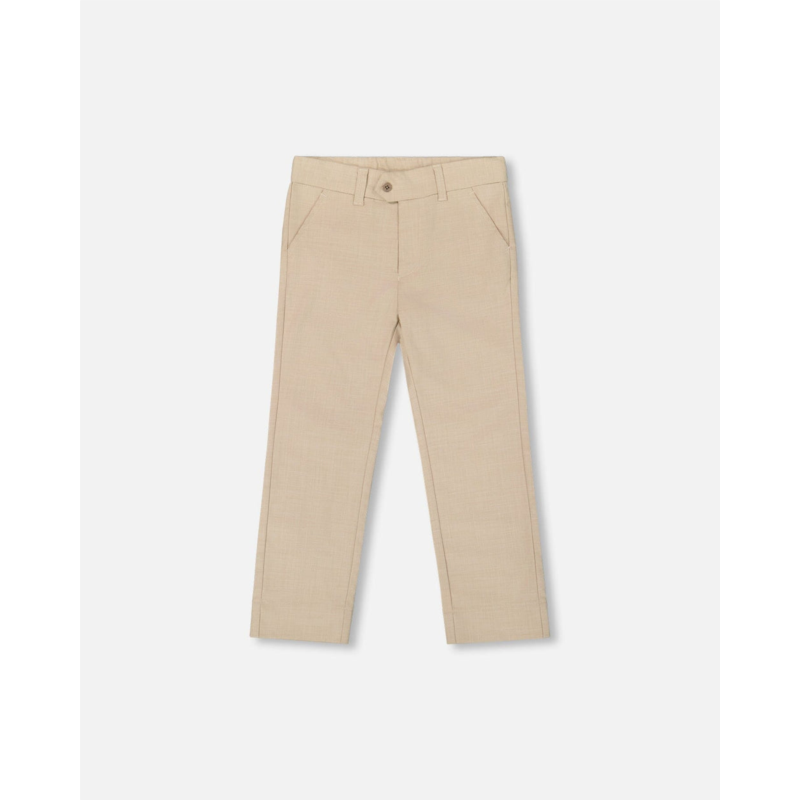 Create a super stylish look for a wedding, party, or special occasion with our Slant Pocket Pants Light Taupe. This classic trouser features a slim, comfortable fit in stretch poly/rayon with slant front pockets and a tab button closure. Team it with a button down shirt and a matching vest or jacket for an adorable dressed up look!