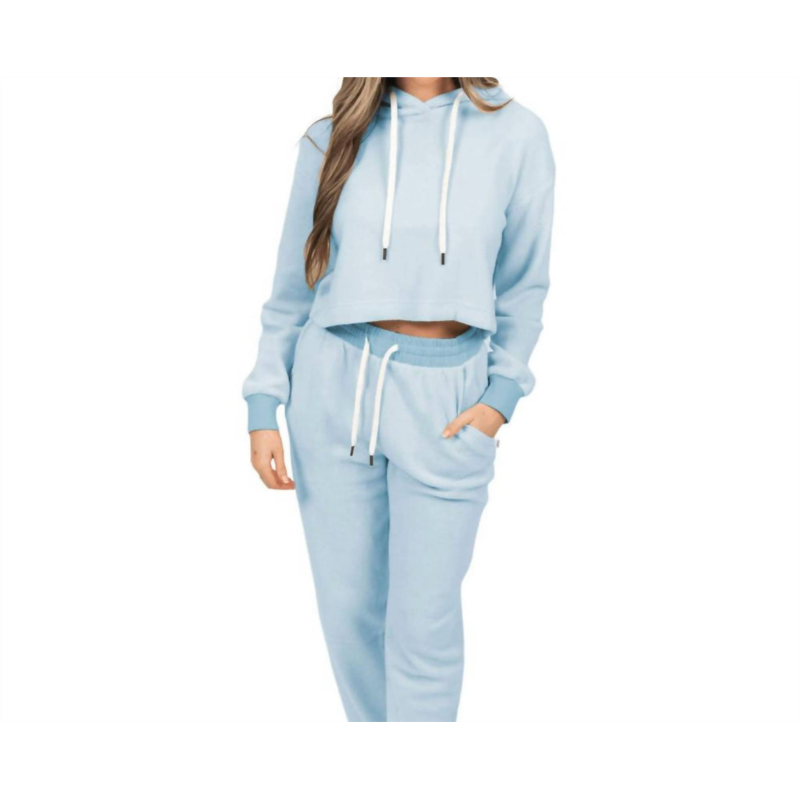 Feat womens blanket blend cropped hoodie in burr blue
