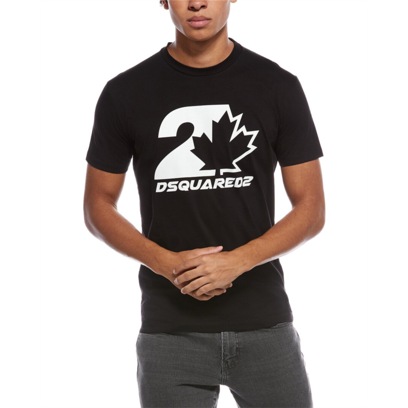 Introducing the Dsquared2 Graphic T-Shirt, a must-have addition to any stylish man''s wardrobe. This black t-shirt features ribbed trim, a classic crewneck design, and a comfortable slip-on styling. Made from 100% cotton, this shirt is both breathable and easy to care for with machine washable properties. The approximate length from shoulder to hem is 27 inches, and the model is 6''1, wearing a size medium. Perfect for everyday wear, this imported Dsquared2 Graphic T-Shirt is sure to become a staple in your collection.