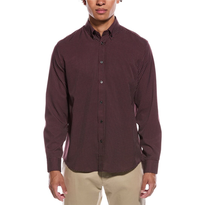 Introducing the Report Collection 4-Way Geo Print Woven Sport Shirt, a stylish addition to any mans casual wardrobe. This shirt features a trendy burgundy color with a unique geometric pattern, adding a modern touch to your outfit. The button-down collar and adjustable button cuffs provide a tailored look, while the button front closure makes it easy to wear. Made from a blend of 93% polyester and 7% spandex, this shirt is not only comfortable but also easy to care for with machine washing. Whether worn with jeans or chinos, this versatile shirt is sure to elevate your style. Available now, imported from Report Collection.