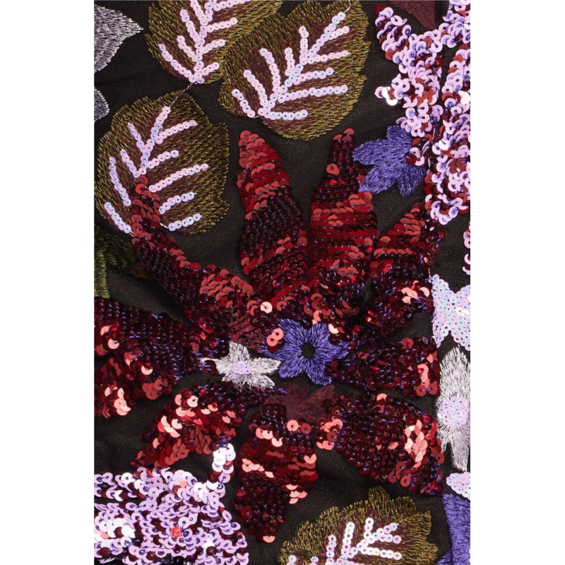 Look and feel like a Goddess in this ever-so-flattering off-the-shoulder blouse in a striking sequins embroidered fabric. Fully lined with a rear zipper.A?