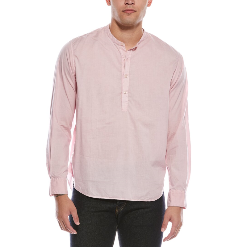 Introducing the OFFICINE GENERALE AUGUSTE PGMT DYE LIGHT CO POP shirt, a versatile and stylish addition to any mans wardrobe. This casual shirt features a stand collar, shirttail hem, and button cuffs for a sophisticated look. Made from 100% cotton, this shirt is both comfortable and easy to care for with machine washable instructions. The rose color and unique dye pattern add a touch of style to this classic piece. Whether worn on its own or layered under a sweater, this shirt is sure to become a favorite. Available in sizes ranging from S to XL, with the model wearing an XL for reference. Elevate your casual look with this Officine Generale shirt today.
