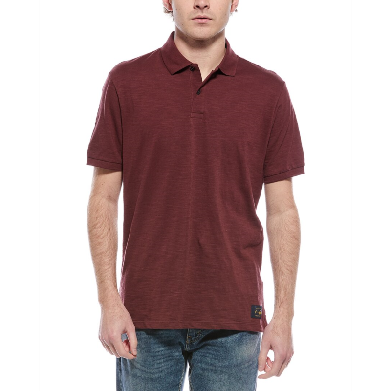 Introducing the Scotch & Soda Slub Polo Shirt, a stylish and versatile addition to any mans wardrobe. This polo shirt features a striking burgundy and black color/pattern, perfect for adding a pop of color to your outfit. Made from 100% cotton, it is comfortable and easy to care for with machine washable instructions. The design details include a spread collar, logo patch, and side slits at the hem for a modern twist on a classic style. The button placket adds a touch of sophistication while the model is 62 and wearing a size medium. Measurements may vary slightly by size. Imported and perfect for any casual or dressy occasion.
