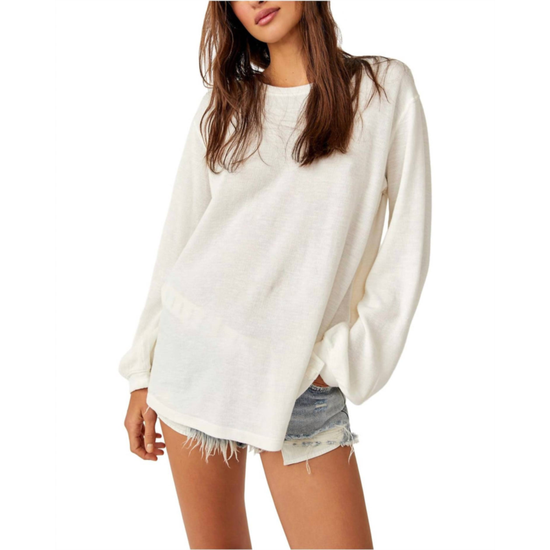 The perfect long sleeve tee that goes with just about anything.Introducing the Soul Song Long Sleeve Tee by Free People, a minimalist addition to your summer wardrobe. Crafted from a cotton blend of 97% cotton and 3% polyester, this crewneck tee is both comfortable and breathable. Its pull-on closure makes it easy to wear, and the solid white color is perfect for a beach day. Care instructions include dry cleaning or machine washing with the option to tumble dry.