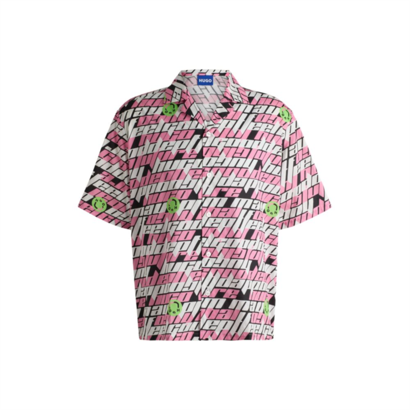In breathable poplin, this HUGO Menswear shirt is a great poolside option. Cut to a loose fit with a camp collar and high-impact print.