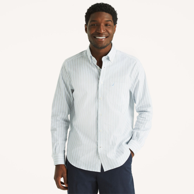 Nautica mens wrinkle-resistant striped wear to work shirt