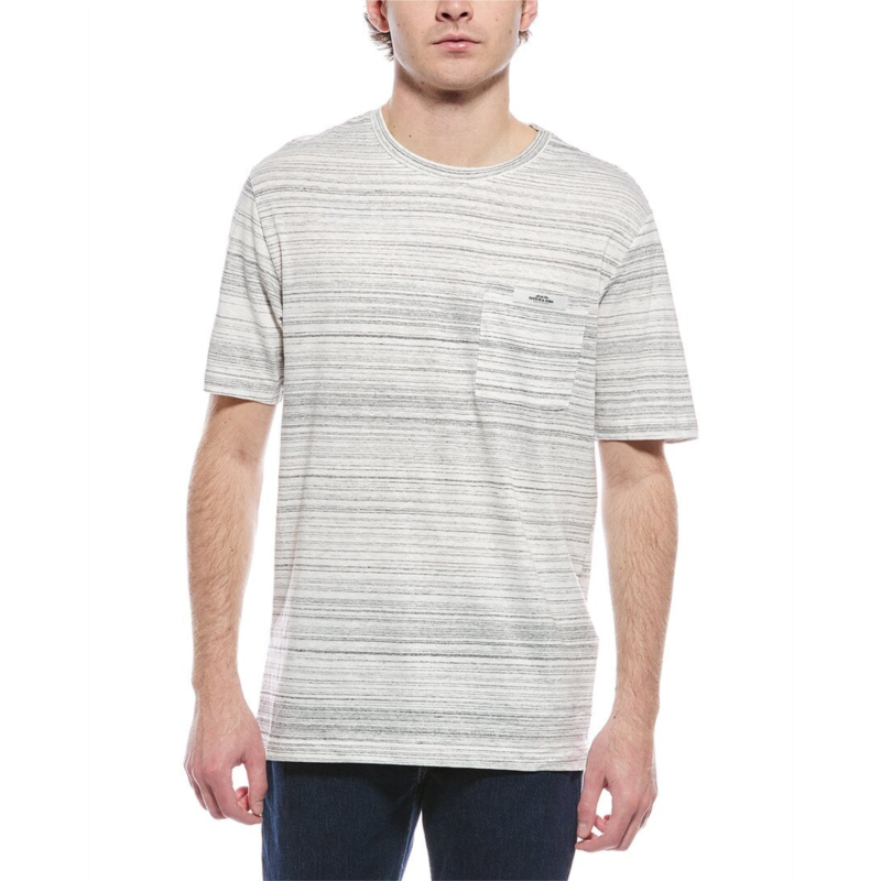 Introducing the Scotch & Soda T-Shirt, a stylish and versatile addition to any mans wardrobe. This classic white stripe t-shirt features a left chest pocket and is made from a comfortable blend of 93% cotton and 7% polyester. It measures approximately 30 inches from shoulder to hem and is designed to fit the modern man, with the model standing at 62 and wearing a size medium. Easy to care for, simply machine wash and enjoy the imported quality of this Scotch & Soda t-shirt. Perfect for casual wear or layering, this t-shirt is a must-have for any fashion-forward man.