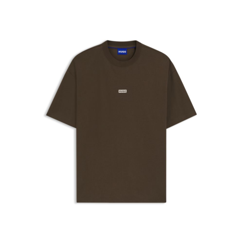 Make a statement in this HUGO T-shirt, featuring large logo artwork printed at the back. Loose fit in cotton jersey. Dropped shoulders. Branding at chest.