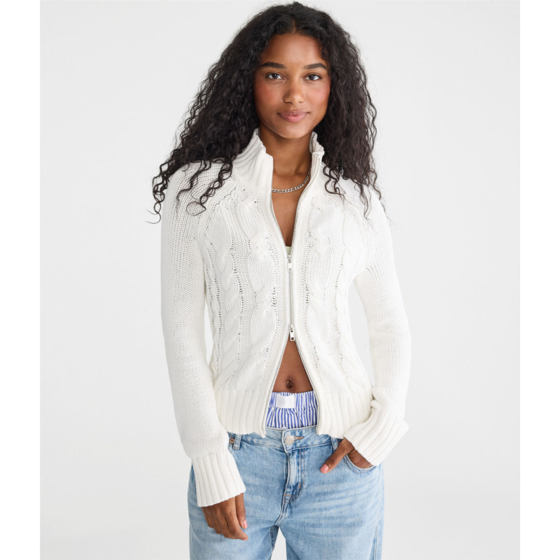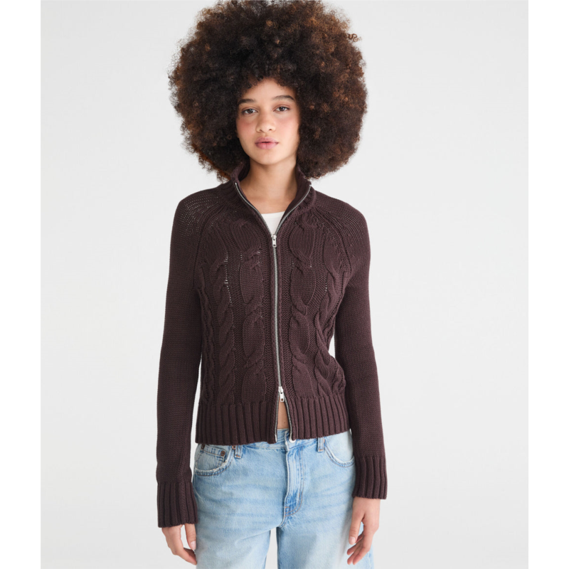 [US] Aeropostale cable mock-neck full-zip cardigan