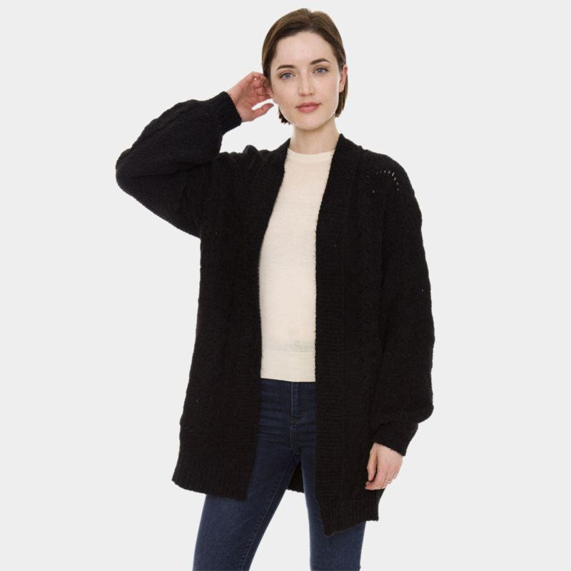 [US] TRUEDAMES hollow knitting long sleeve snap fasteners cardigan
