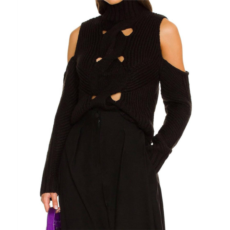 A classic staple that every closet needs.Elevate your fall wardrobe with the Keke Turtleneck Sweater by For Love & Lemons, crafted for modern style. This women’s sweater in classic black features long sleeves and a textured pattern. Made entirely from 100% Acrylic with a dense cable rib knit, it offers both warmth and sophistication. Conveniently pull-on, it’s made in China with care instructions to hand wash and lay flat to dry.