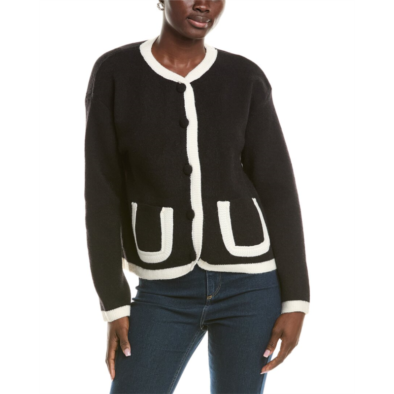Introducing the luxurious ANNA KAY Jolinne Cashmere-Blend Cardigan from the renowned brand ANNA KAY. This stylish cardigan in and is wearing a size small. Made in France, this cardigan is perfect for adding a touch of elegance to any outfit.
