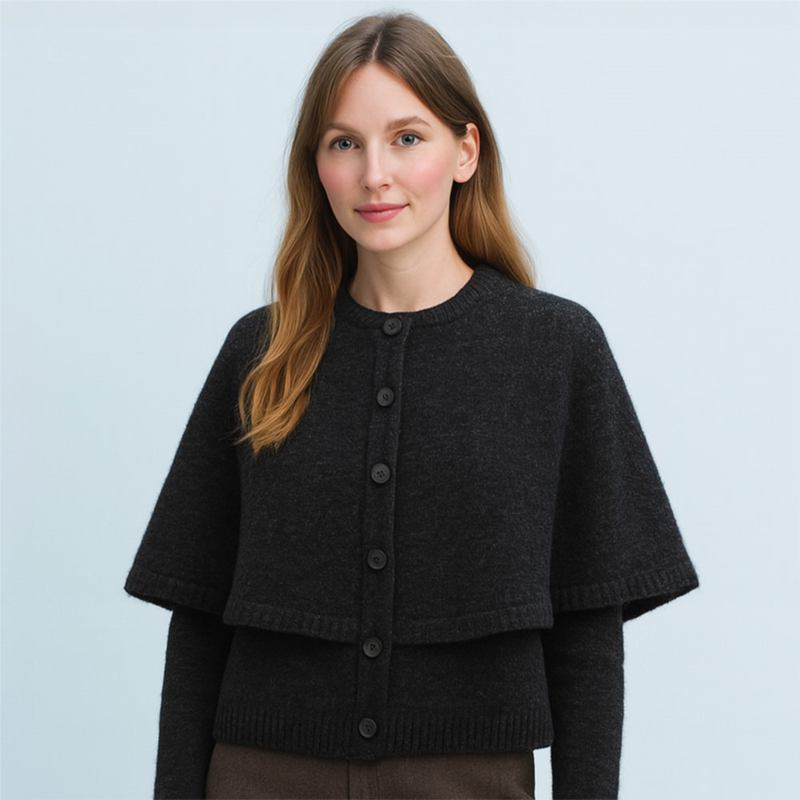 TRUEDAMES cozy knit button front cape poncho