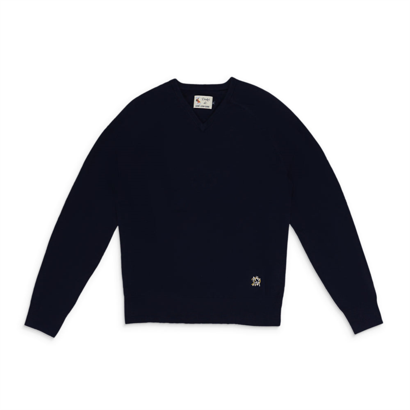 AIME LEON DORE navy drakes intarsia knit sweatshirt