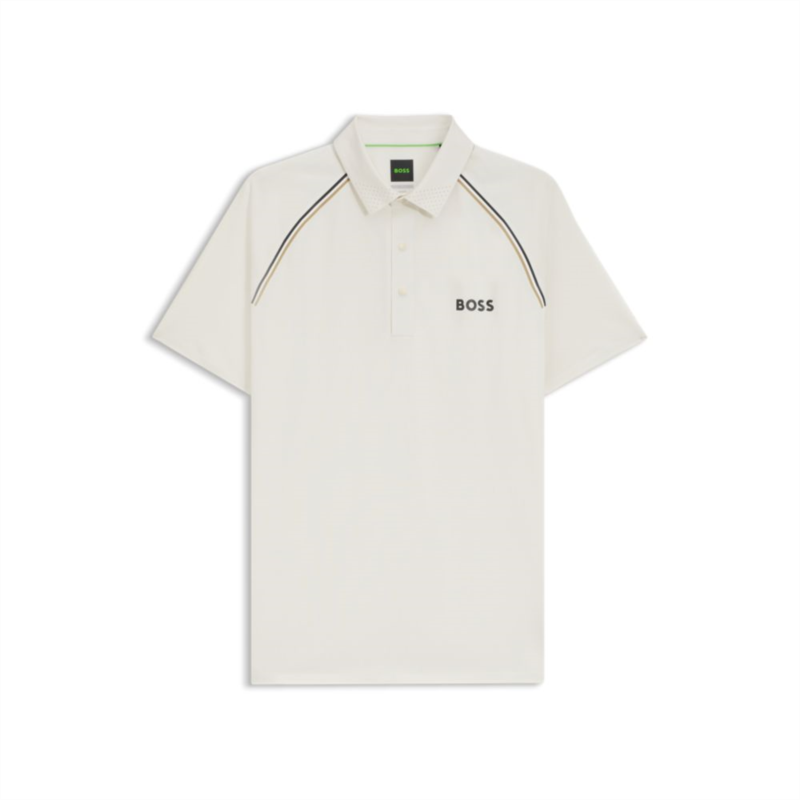 With signature stripes and branding, this quick-drying BOSS Menswear polo shirt provides reliable moisture management. Slim fit Perforated collar detail. Bonded seams for comfort.
