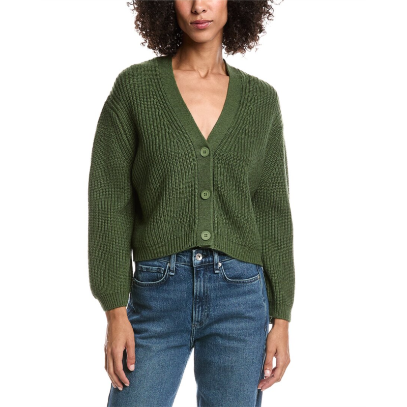Elevate your wardrobe with the Forte Cashmere Wool & Cashmere-Blend Short Rib V-Neck Button Cardigan. This luxurious piece from Forte Cashmere is crafted with 90% wool and 10% cashmere, providing a soft and cozy feel. The short rib design, V-neckline, and button front closure add a touch of elegance to this classic cardigan. Perfect for layering or wearing on its own, this cardigan in chive with ribbed trim is a versatile addition to any wardrobe. Pair it with your favorite jeans or dress it up with a skirt for a sophisticated look. This cardigan measures approximately 21 inches from shoulder to hem and is available in sizes small to large. Dry clean only. Imported.