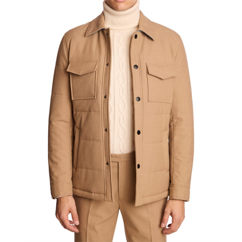 Introducing the Paisley & Gray Quincy Quilted Jacket, a stylish and versatile addition to any modern man''s wardrobe. This slim-fitting jacket in light camel color is perfect for adding a touch of sophistication to your casual looks. With its quilted design and multiple pockets, this jacket is both practical and fashionable. The 5 snap button closure adds a contemporary touch to this classic piece. Made from a blend of 64% polyester, 34% rayon, and 2% spandex, the Quincy Quilted Jacket is as comfortable as it is stylish. The 100% polyester lining ensures a smooth fit. Dry clean only. Imported. Elevate your outerwear game with this unique and chic jacket from Paisley & Gray.