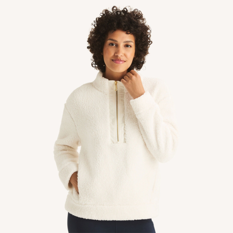 [US] Nautica womens quarter-zip faux shearling pullover