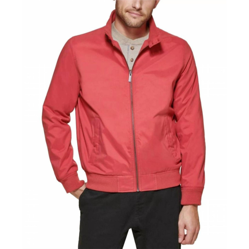 Introducing the Club Room Baracuta Jacket, a vibrant red garment crafted for both style and functionality. Featuring long sleeves and a stand collar with button-tab, it offers a full-zip front closure. The shell is made from a blend of 84% polyester and 16% nylon, with a 100% polyester lining for comfort and water resistance. Including practical details like two front hand pockets and an interior zipper pocket, this jacket is machine washable and line dry for easy care.