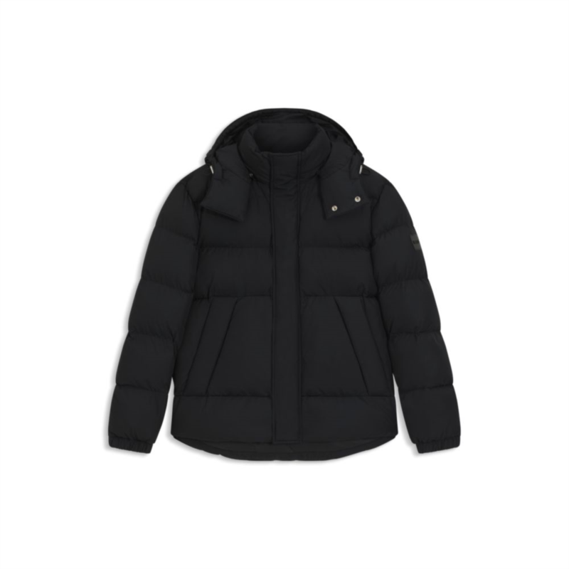 Stay warm and dry through the changing seasons with the water-repellent finish of this padded BOSS Menswear jacket. Logo badge on left sleeve.