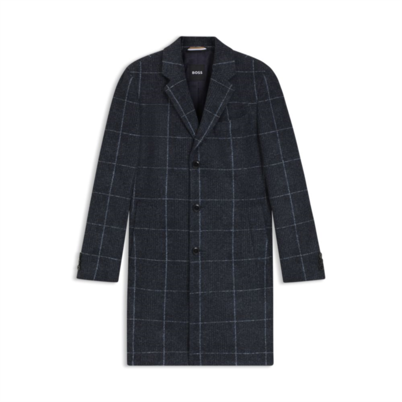 BOSS slim-fit coat with plain check