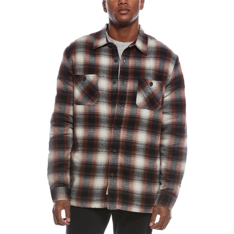 Introducing the WEATHERPROOF VINTAGE Sherpa Lined Shirt Jacket, a stylish and comfortable addition to your outerwear collection. This men''s jacket features a Merlot Plaid color/pattern, with dual chest pockets and side seam pockets for added convenience. The button front design adds a classic touch, while the sherpa lining provides extra warmth on chilly days. Made with a shell of 60% Cotton and 40% Polyester, and a 100% Polyester lining, this jacket is both durable and cozy. Machine washable and imported, this jacket is perfect for everyday wear. The model is 6''2 and is wearing a size Medium. Measurements may vary slightly by size.