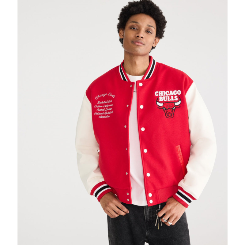 The true all-star of your Chicago Bulls wardrobe, with authentic details right down to the chenille team graphics and faux leather sleeves.