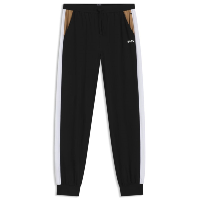 In jersey with stretch, these cuffed BOSS Menswear pajama bottoms are a refined overnight choice. Contrast panels in signature colors.