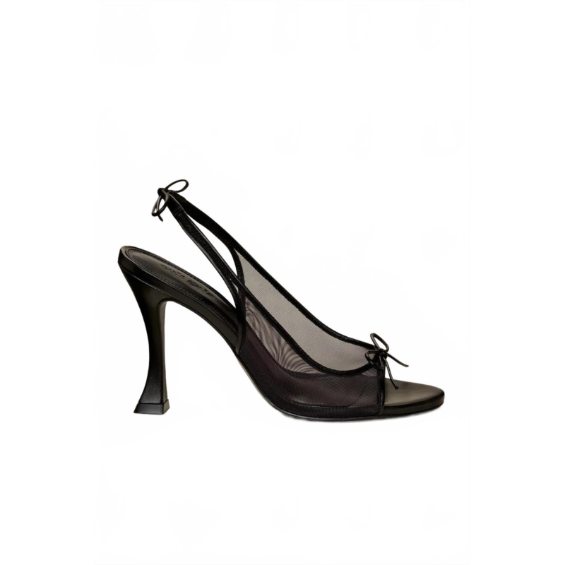 The perfect height for day to night.Step up your style game with the Cici Slingback Sandal by Cult Gaia, embodying the grace of Scandi Style. These chic black heels feature an elegant spool heel and a fashionable open toe. Expertly crafted with an upper made of 100% nylon, accented with 100% sheep leather trim, and a durable sole made of 100% reconstituted leather, they promise comfort and sophistication. Imported, these sandals are designed in American (US) sizing, making them a timeless addition to any wardrobe.
