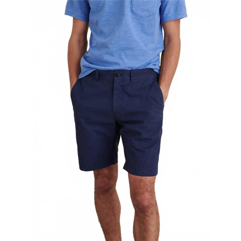 Elevate your summer wardrobe with Alex Mills Standard Chino Short, a minimalist staple perfect for a dinner party. These navy, flat-front shorts feature real Corozo button closure and offer classic solid coloring with pockets for functionality. Crafted to achieve a lived-in look from the start, they are designed with a garment-dyed finish. Care for your shorts effortlessly with machine wash and tumble dry instructions.