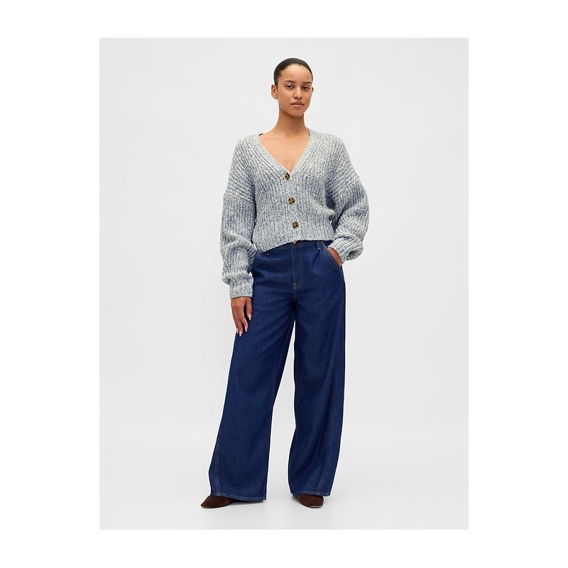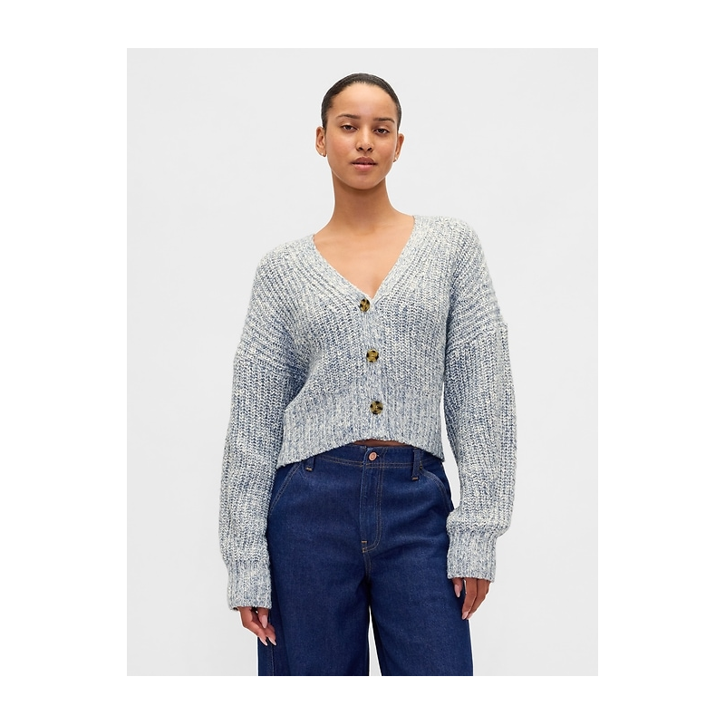 - Soft, marled knit cardigan sweater. In a relaxed fit and cropped length.