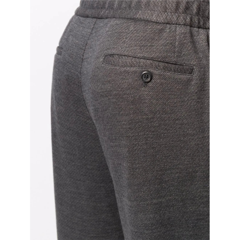 - charcoal grey - virgin wool-linen blend - mid-rise - elasticated waistband - two side slit pockets - two rear welt pockets - straight leg