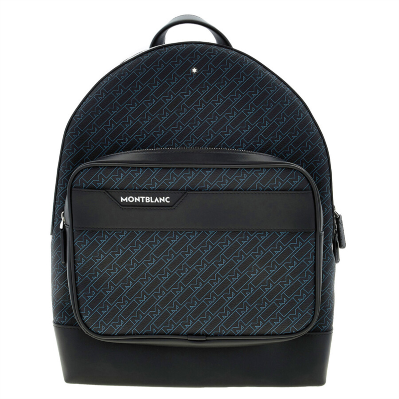 Montblanc Backpack. SKU: 127411. Color: Blue. Montblanc M_Gram 4810 Backpack. Showcasing Montblanc’s archival-inspired M pattern, this backpack combines timeless style with everyday function. It features a spacious main compartment, a front zipped pocket, and an interior zipped pocket to keep essentials organized on the go.