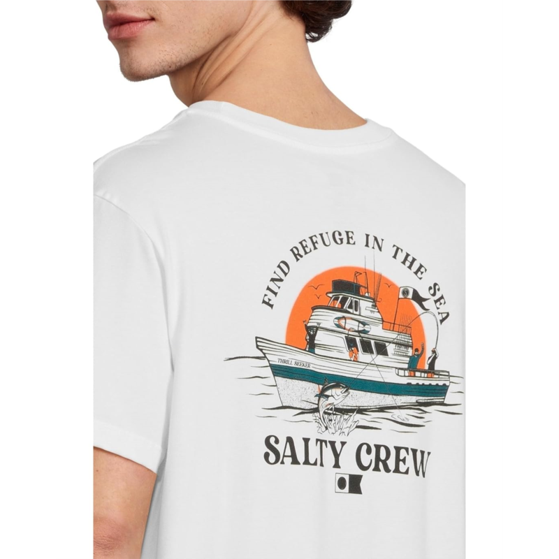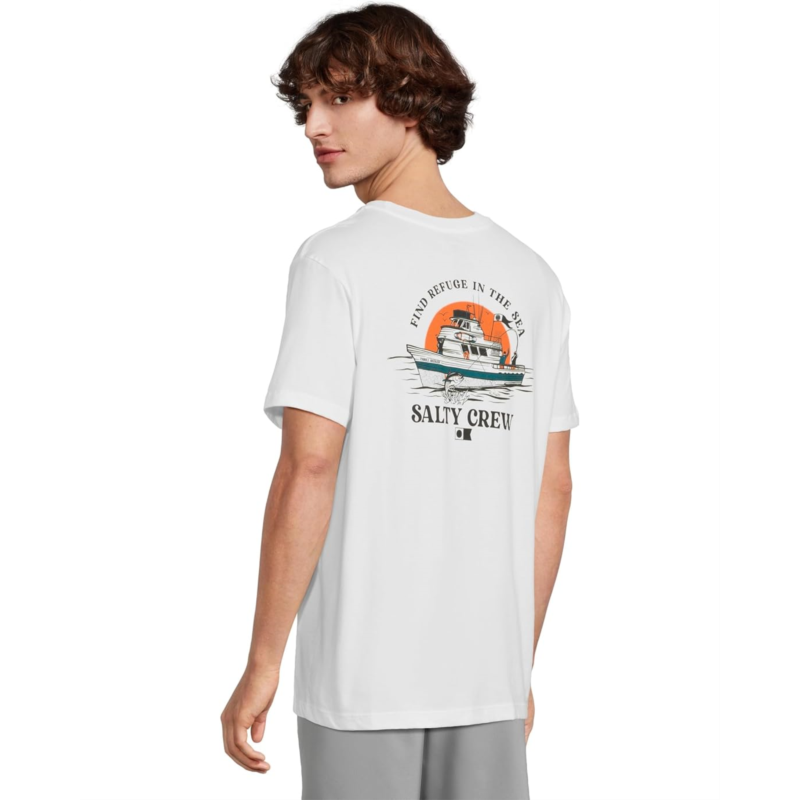 The Salty Crew Day Charter Shortsleeve Tee offers a modern update to the brand''s best-selling premium fit, crafted from 30 singles combed ringspun cotton for a softer, more comfortable feel. It features screen-printed graphics on both the front and back, along with a classic crew neckline and short sleeves for a laid-back, everyday look.