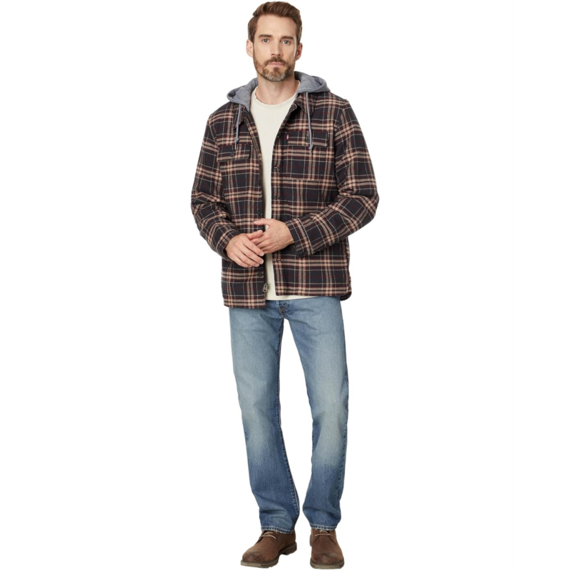 Complete cool-weather looks with classic style and cozy comfort in the Levi''s Washed Cotton Shirt Jacket with A Jersey Hood and Sherpa Lining.