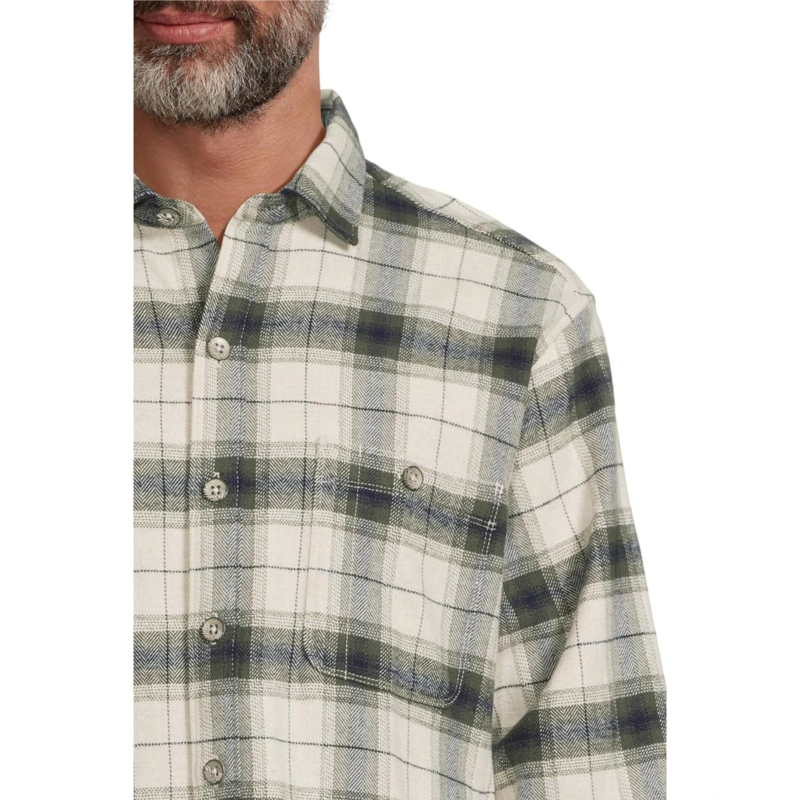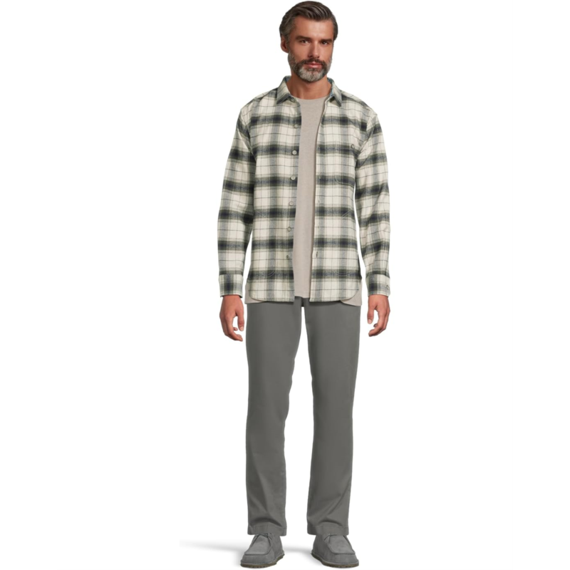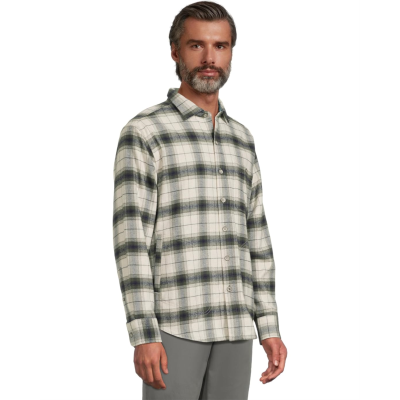 Find the perfect layer on chilly days in the Tommy Bahama Shaw Island Shirt Jacket. Featuring a spread collar with a front button closure, long sleeves with button closure cuffs, rounded button-through chest pocket, lower welt pockets, and a shirttail hemline.