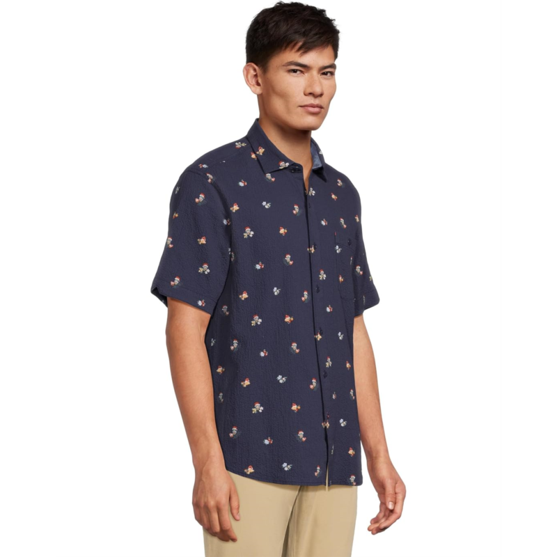 Step into effortless sophistication wearing the Tommy Bahama Nova Wave Merry Cocktails Shirt, a cheerful blend of comfort, class, and coastal cool. Crafted from soft printed seersucker fabric with just the right hint of stretch, this short-sleeve camp shirt keeps you breezy and relaxed through every happy hour. The classic fit, collared neck, and button-front closure offer timeless polish, while the camp collar and shirttail hem deliver that laid-back, island-life charm Tommy Bahama is famous for.