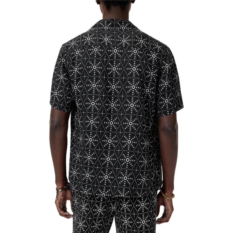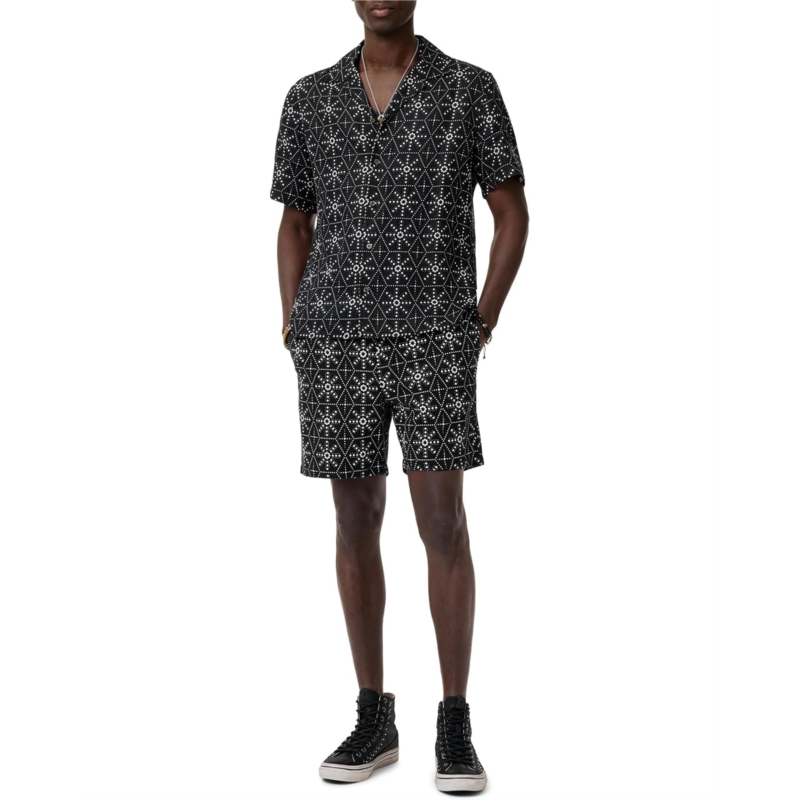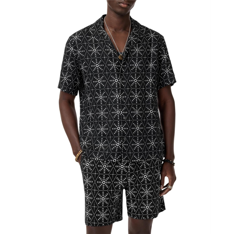 Style up your casual or semi-casual looks wearing John Varvatos Dan Shirt W792S25. The shirt features a classic collared neck, short sleeves, a full-button closure, and an allover graphic print.