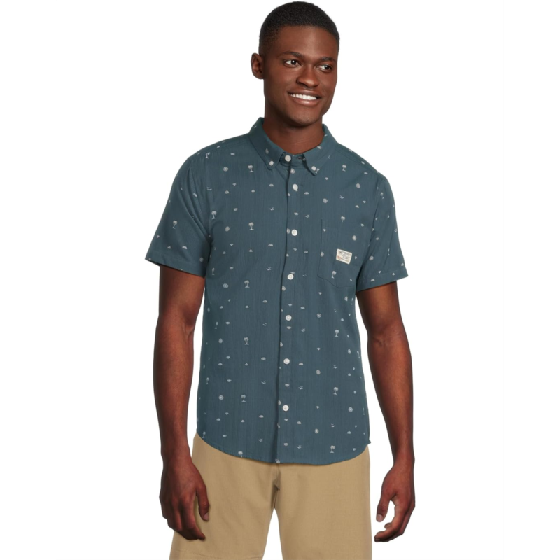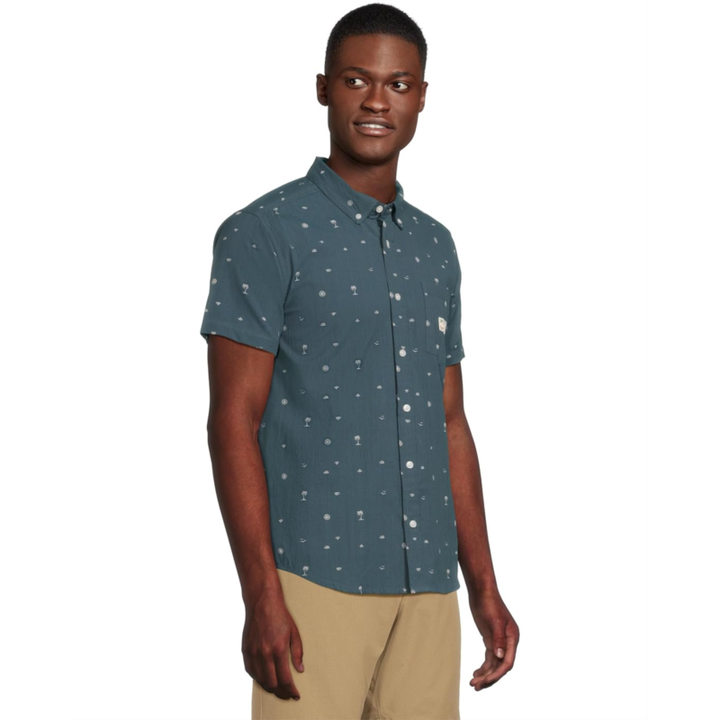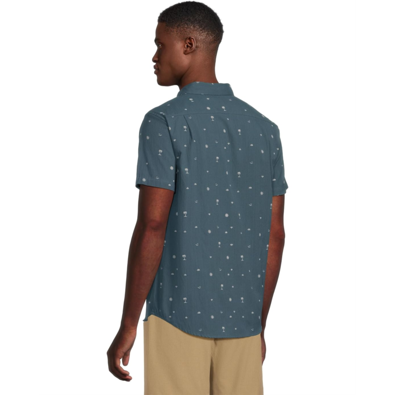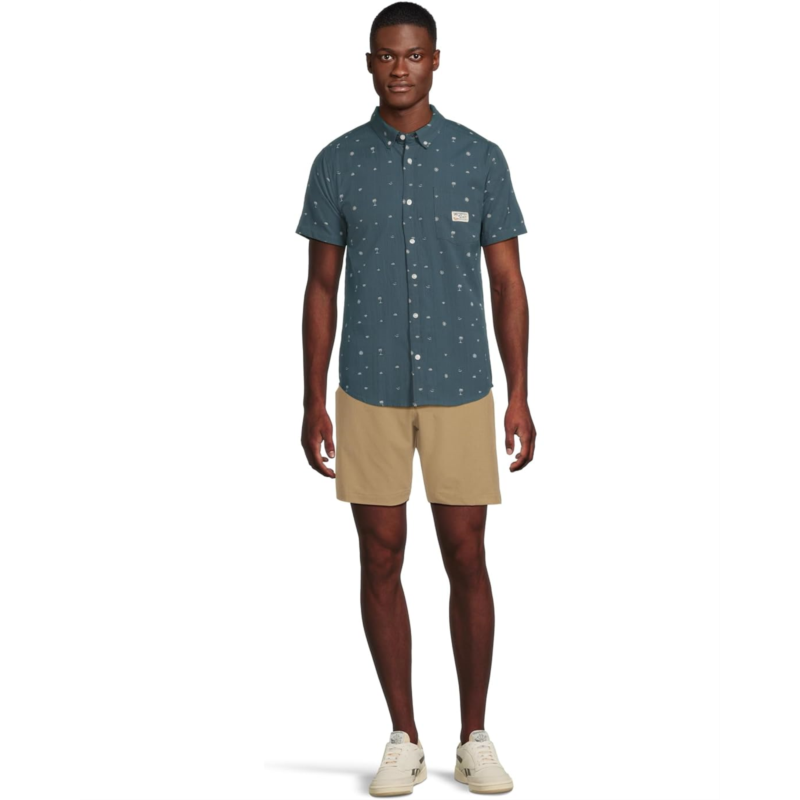 Experience a luxurious feel with the RVCA Exotica Seersucker Short Sleeve shirt. Crafted from a lightweight and breathable linen-viscose fabric, this striped button-up shirt offers a regular fit with a traditional collar neck, a single chest pocket, and a slightly scalloped hem.